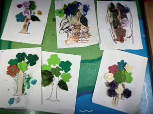 At first, I prepared a natural materials activity in which the children could create a tree on paper using flowers and small wooden pieces. However, after reflecting, I realized that this might not yet fully respond to the children’s real ideas. The BC ELF mentions, “Pedagogical narration is the process of noticing and collecting moments from daily practice and sharing these with colleagues, children, and families. (p. 51)” This reminded me that pedagogical narration is not only about recording what has already happened, but also about helping me stop, notice what the children are expressing, and reconsider how I should respond next. So I began to slow down. I did not rush to move the activity forward; instead, I continued discussing the details of the trees with the children.