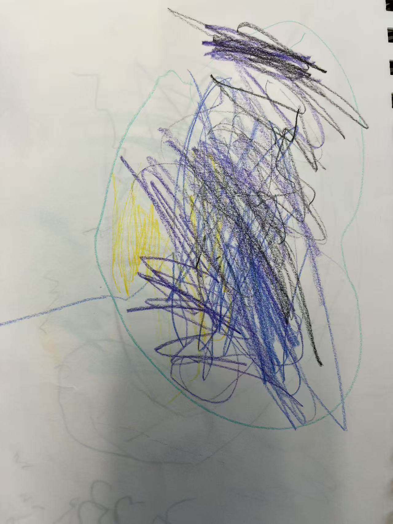 I also noticed a new interest emerging naturally. During an indoor-to-outdoor transition, two children talked about “ghost.” Later outside, another child pointed to a rock and said it was a “ghost.” Instead of redirecting the topic, I invited children to explore what a ghost might look like through drawing. Children created different representations (for example, a large circle shape, or a long thin body). I saw this as children expressing their own theories.