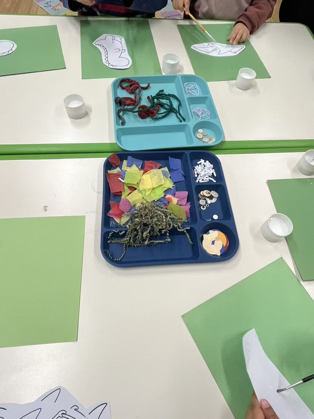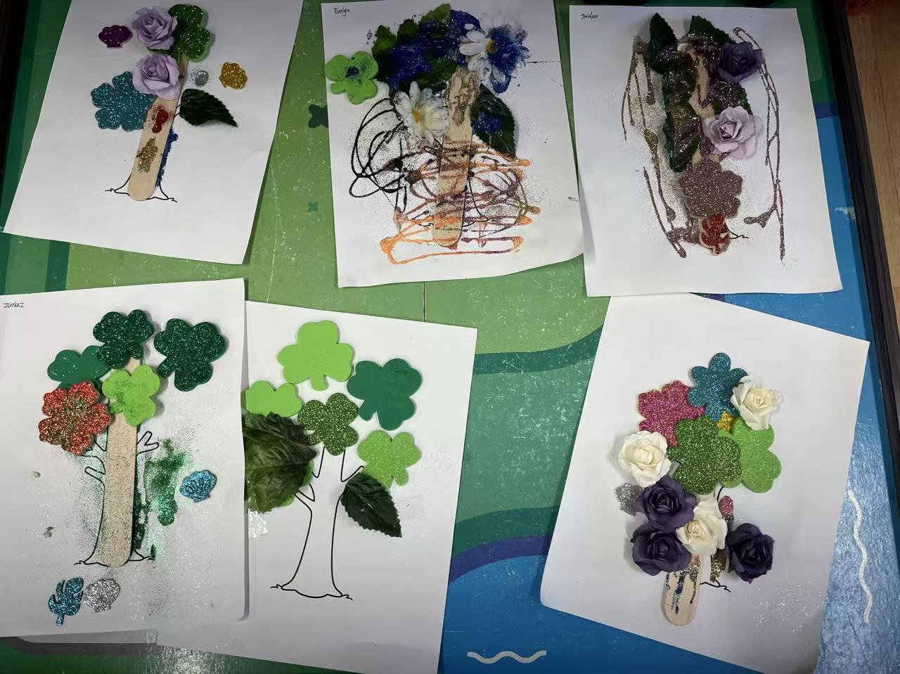I hoped that when the children passed by the table again, they would be able to see each other’s work, compare different ideas, and generate new connections and discussions. They might notice who used larger leaves, who created a more eye-catching tree, or whose tree looked more “strong.” These moments of revisiting could bring them back to their earlier ideas or inspire new ones.